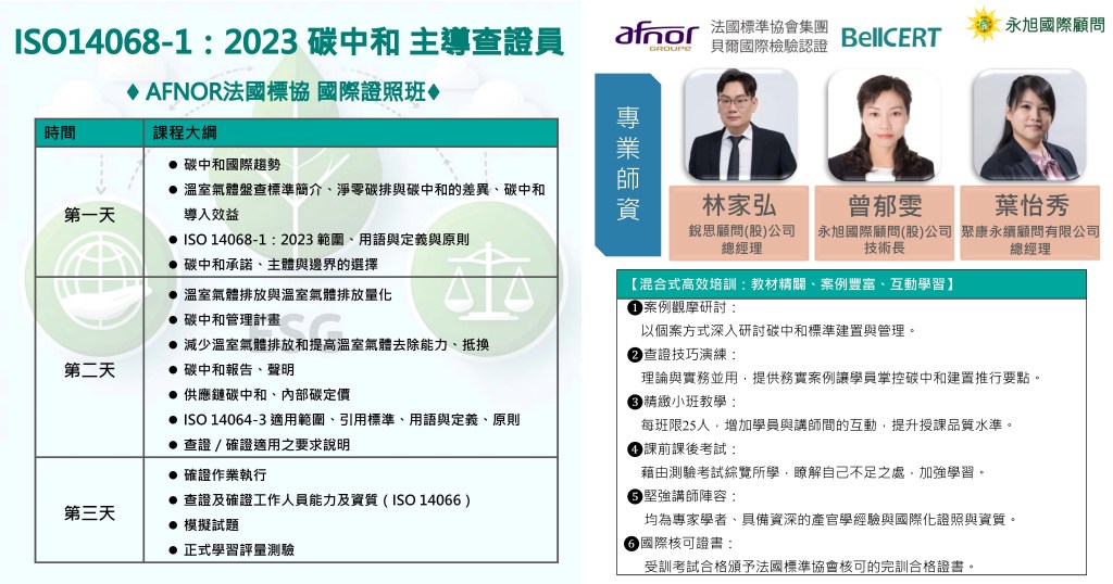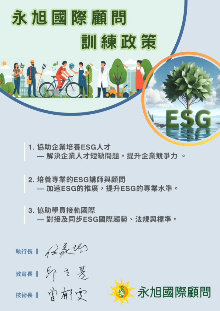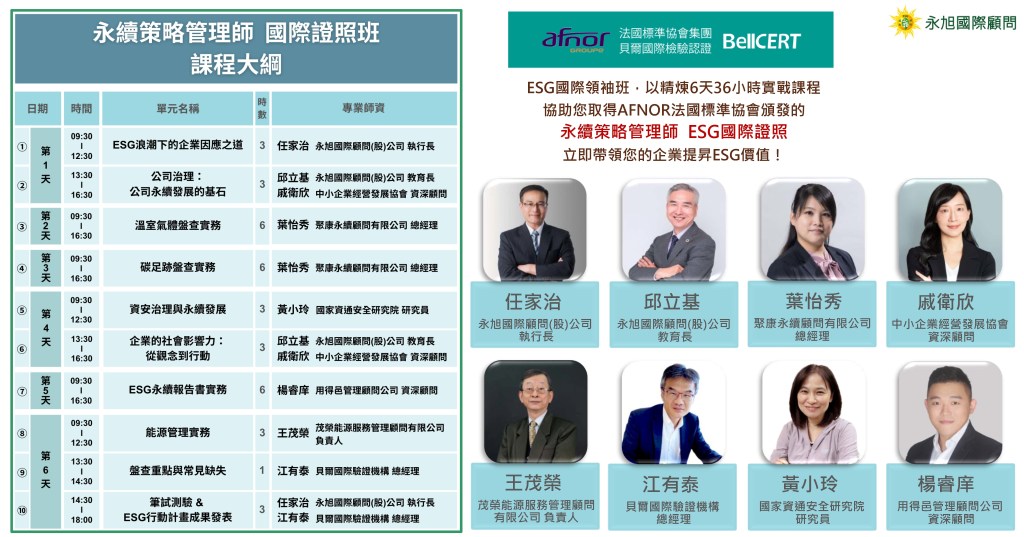 知識與技能,協助企業朝向ESG永續整合管理系統邁進、強化市場競爭力。